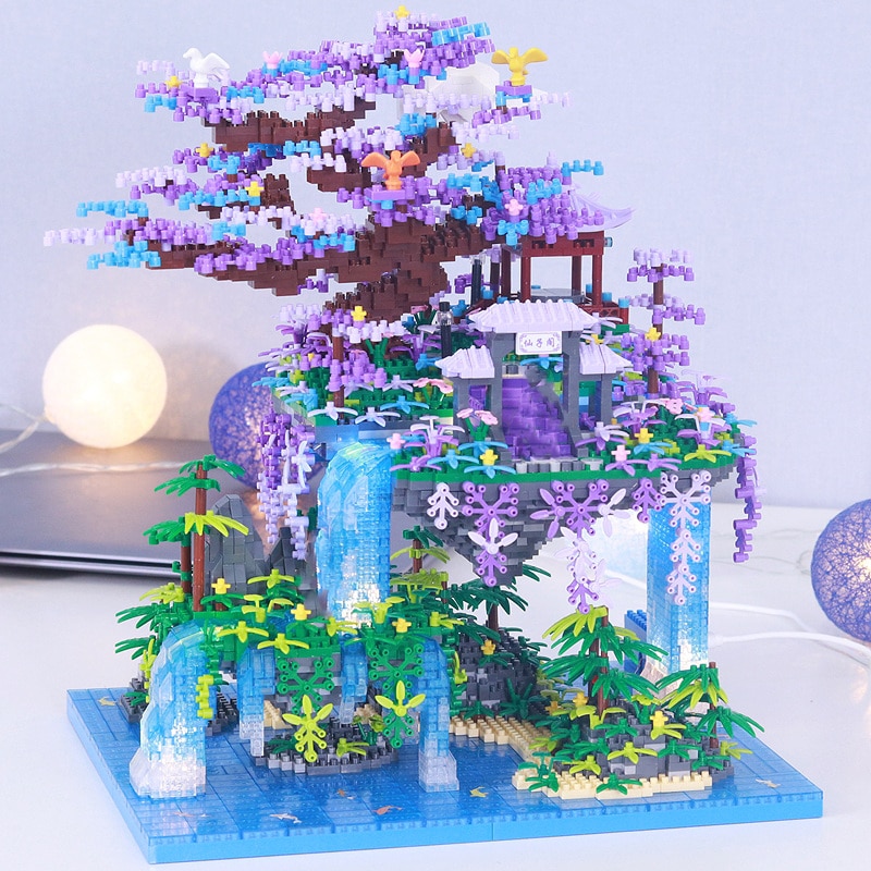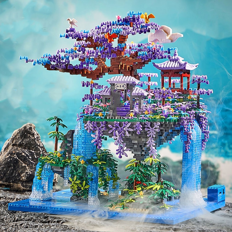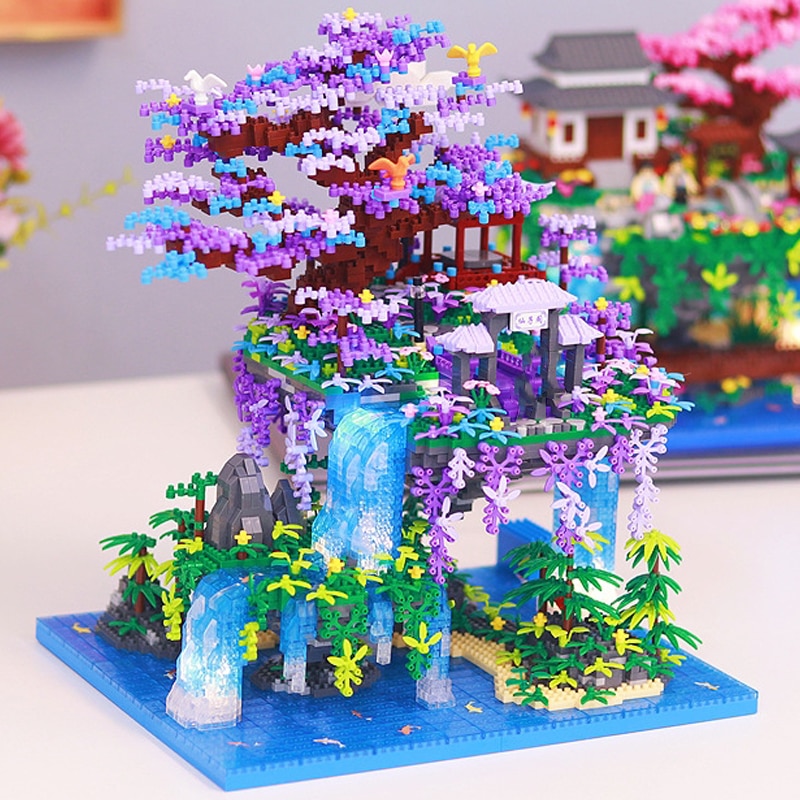 HomeMini Blocks Balody 16290 Pavilion Tree Island Waterfall Pool LED Light